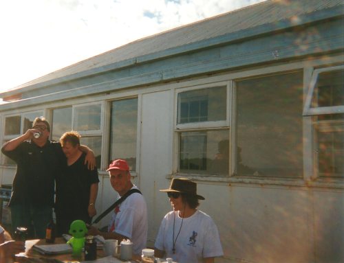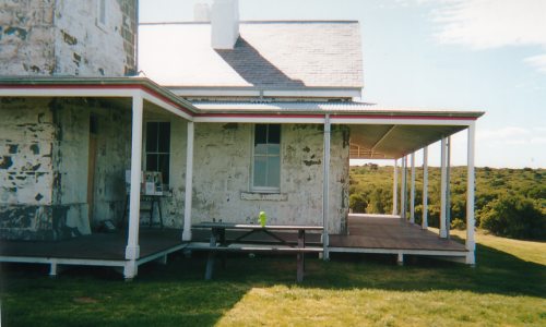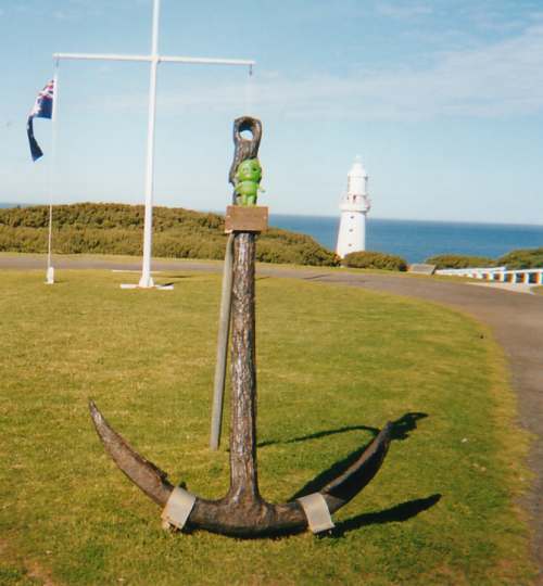 Alien Baby enjoys a beer with his new Aussie friends outside the Assistant Lighthouse Keepers Cottage which was where he passed a most agreeable night.