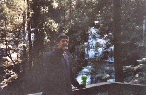 Deep in the Otway forest Alien Baby is delighted to find a spectacular waterfall though it was so dim and shaded at the bottom of the gully.