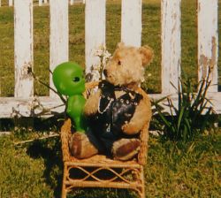 Alien Baby makes the acquaintance of an Australian Bear. The bear was not impressed, though it hardly fazed Alien Baby.