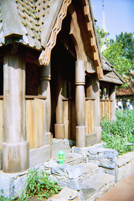 The Alien Baby Visits Disney's Epcot The alien baby decided to visit Disney's Epcot in Orlando, Florida, but was disappointed by the cold reception given by Disney's ambassadors. Sneezy the dwarf not only refused to have his photo taken with the alien baby, but made slightly threatening motions with his arms. Even Alice in Wonderland would have nothing to do with the alien baby - although the alien baby did sneak into a nearby store and manage to get a photo with Alice in the background. The alien baby wonders if Disney thought he might be a threat to their billion dollar empire. Considering the alien baby could demolish all Disney installations in North America with a single long distance call to the Alien Baby Death Ray operators orbiting Earth, maybe they have a point...